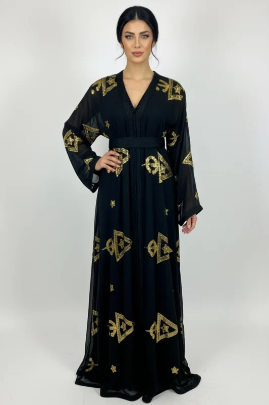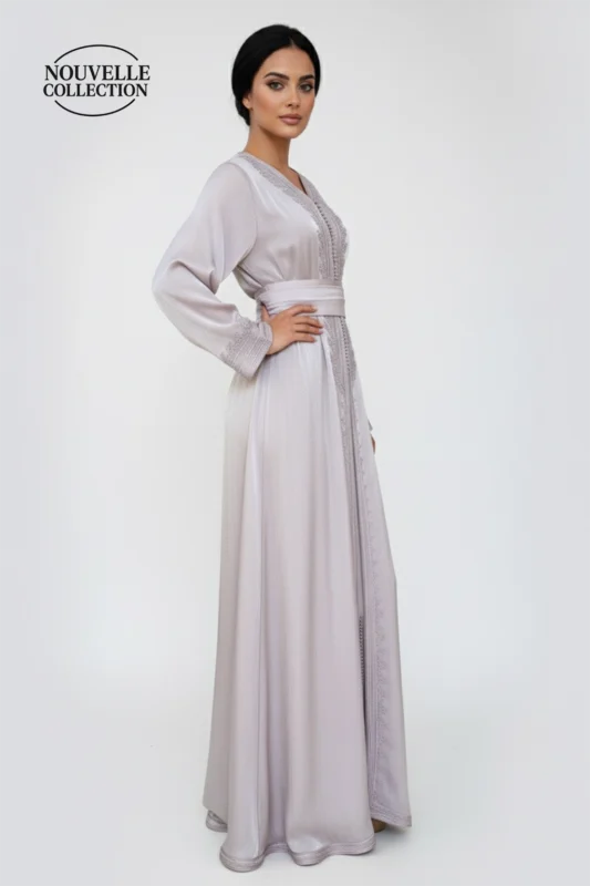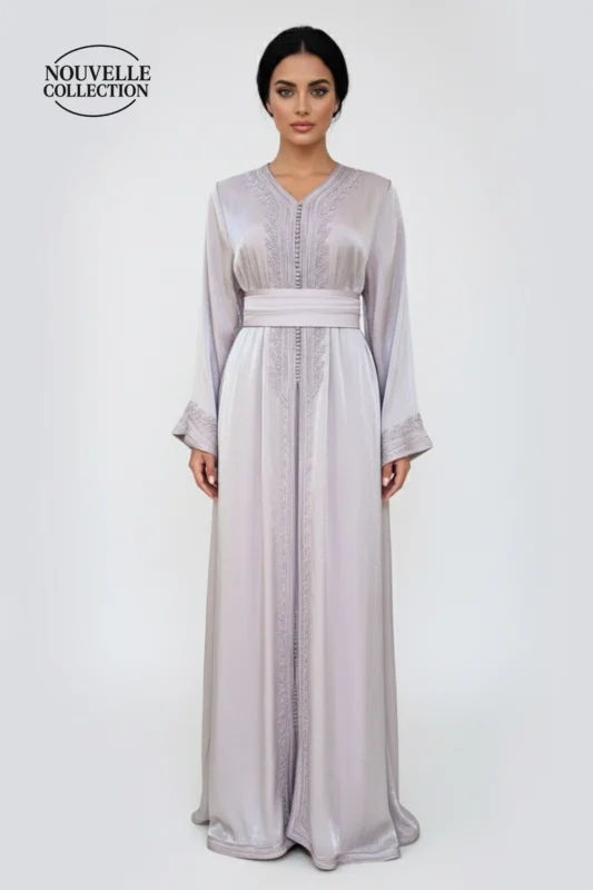 Nous mettons en valeur le patrimoine marocain à travers des tissus nobles, des broderies délicates et des coupes modernes.